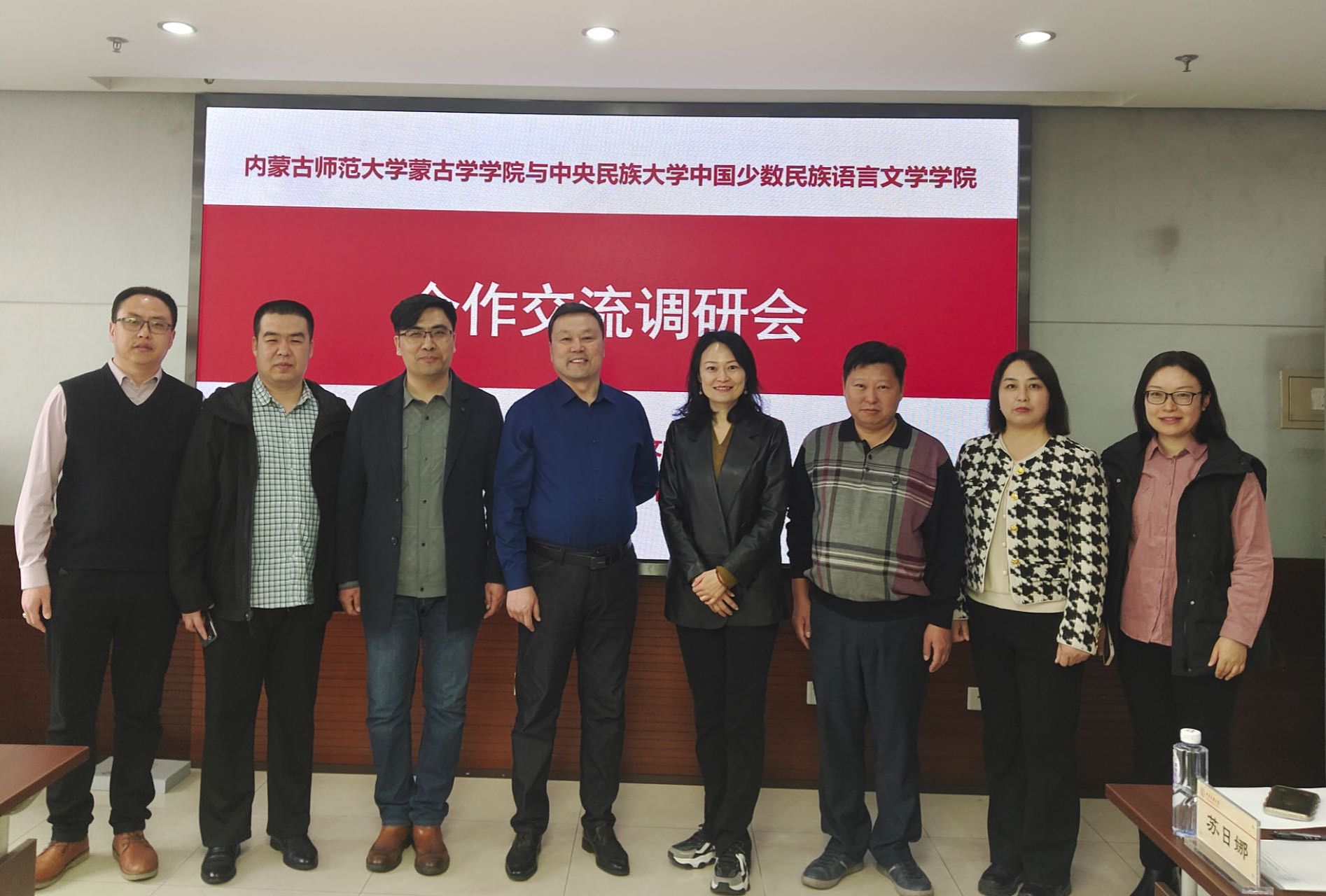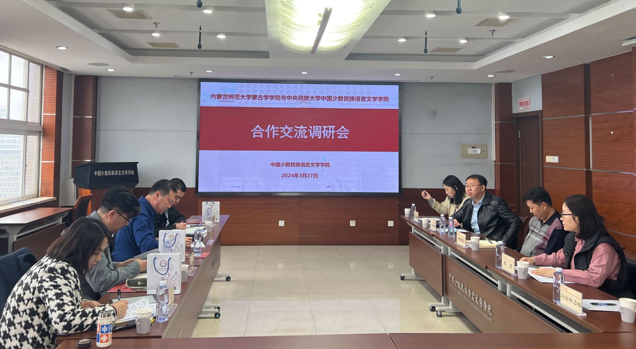 2024年3月27日上午,内蒙古师范大学蒙古学公司党委书记孟根巴根、蒙古语言文学系主任阿拉达日吐、翻译系主任彩云、数字人文系主任那达木德一行四人来公司调研。中国少数民族语言文学公司党委书记袁辰霞、副经理金青龙、教学管理办公室主任美丽、公司办公室乌云毕力格、蒙古语言文学教学系好比斯嘎拉图、苏日娜老师参加交流座谈。