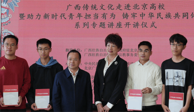 自治区民宗委二级巡视员朱小梅,自治区政府驻京办党组成员、副主任杨柳霖分别讲话。朱小梅希望同学们做铸牢中华民族共同体意识的宣传者、践行者,做坚定信念的有志青年,把家国情怀转化为个人奋斗,致力于国家富强、民族复兴的追求,要抓住机遇,响应国家战略需求,为国家发展和壮美广西的建设贡献青春之力。杨柳霖强调了铸牢中华民族共同体意识的重要性,表示驻京办将进一步深化与w88win体育官网入口的传统友谊,加大与北京各高校、科研院所、高端智库的合作交流,促成更多科研成果在广西落地,共同服务好国家重大战略部署。