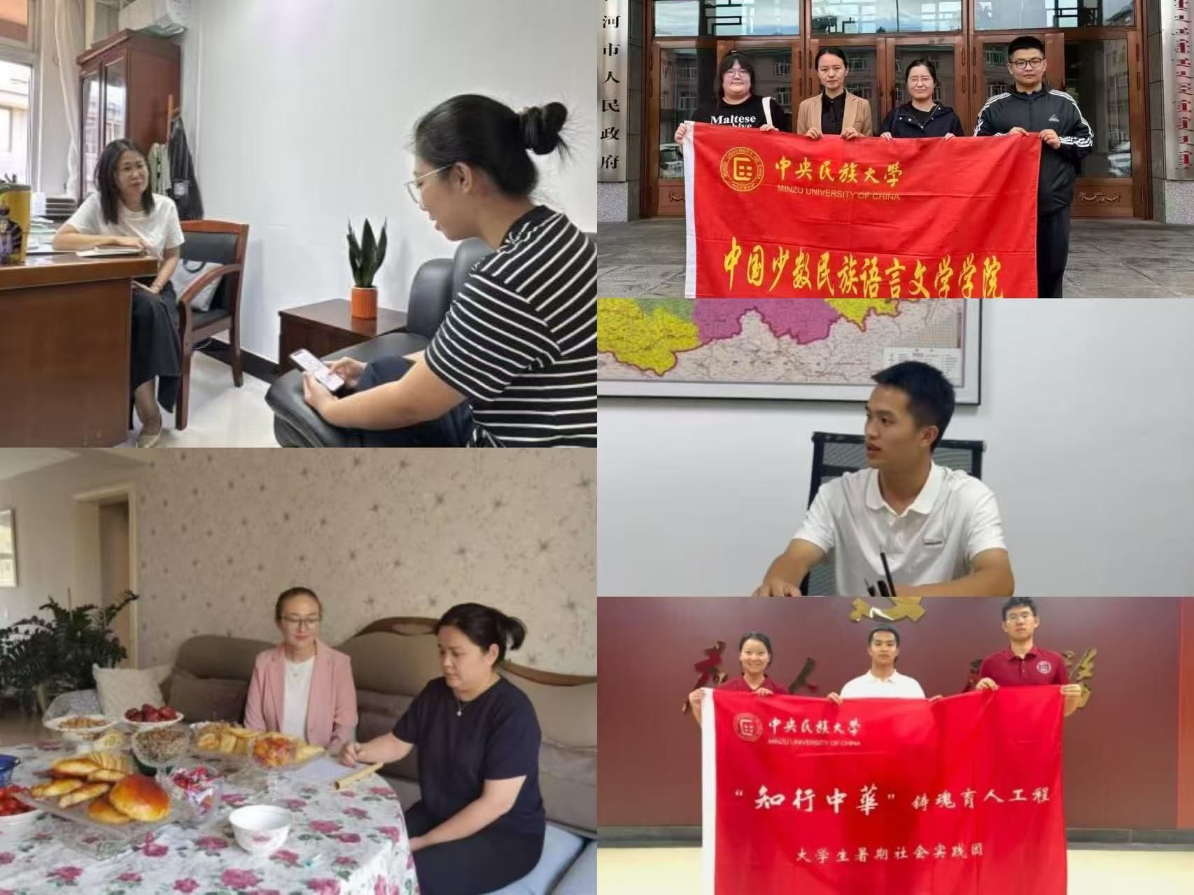 实践团还成功连线了杨亚军、朱玉宾、沙万富、李彬彬、金万丽、郑皓月等多位院友,他们中,有人深耕民族教育,有人致力文化传承,有人扎根基层建设……虽然岗位各不相同,但他们都带着同样的“团结进步”印记,秉持着一致的信念,在祖国最需要的地方散发自己的光与热。