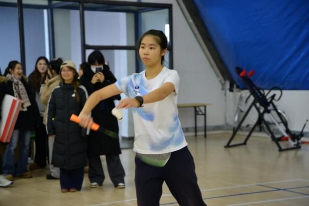 羽毛球比赛中,84名参赛者跨越不同年级,用速度与反应诠释竞技之美。每一次挥拍都充满力量,轻盈的羽毛球在空中来回穿梭,划出一道道优美的弧线。