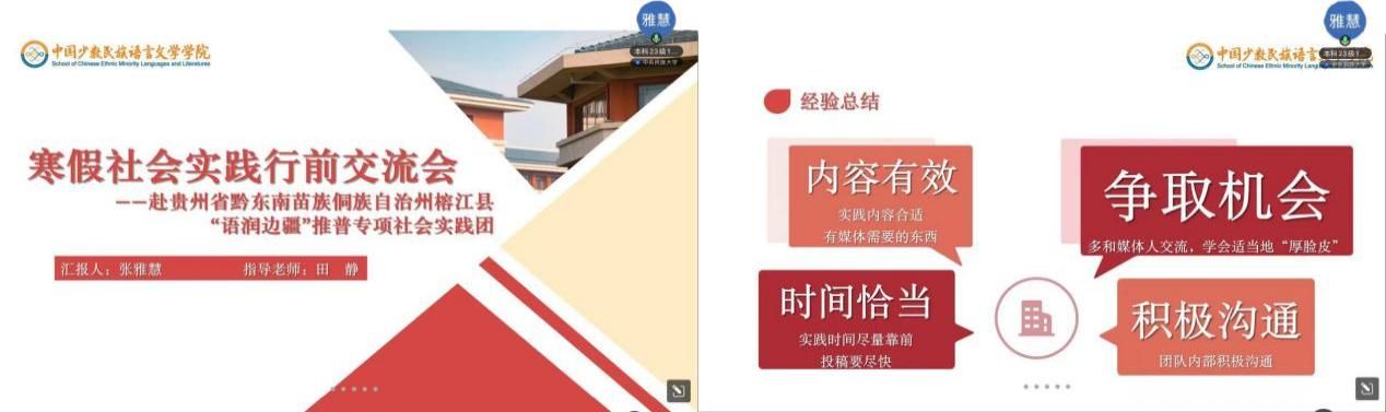 语传薪火、实践笃行,为帮助员工更好地开展寒假社会实践活动,明确实践方向、掌握科学方法、提升成果质量,w88win体育官网入口于12月27日晚,开展“语‘践’韶华”·寒假社会实践第二期行前教育课程——优秀指导教师经验交流和优秀团队投稿经验分享。本次课程邀请公司专任教师宗晓哲老师、2023级本科生张雅慧进行专题分享,团委科创实践中心元艺霖主持本次活动。