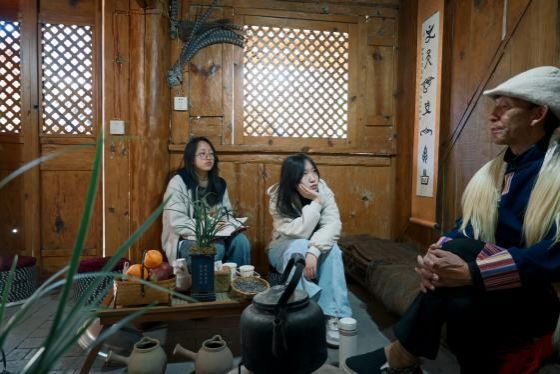 公司学子与纳西古乐的老艺人、安顺屯堡地戏00后传承人交流