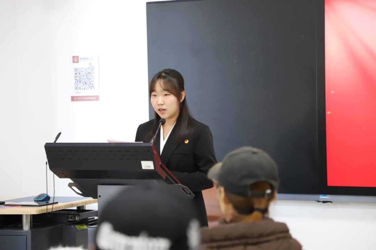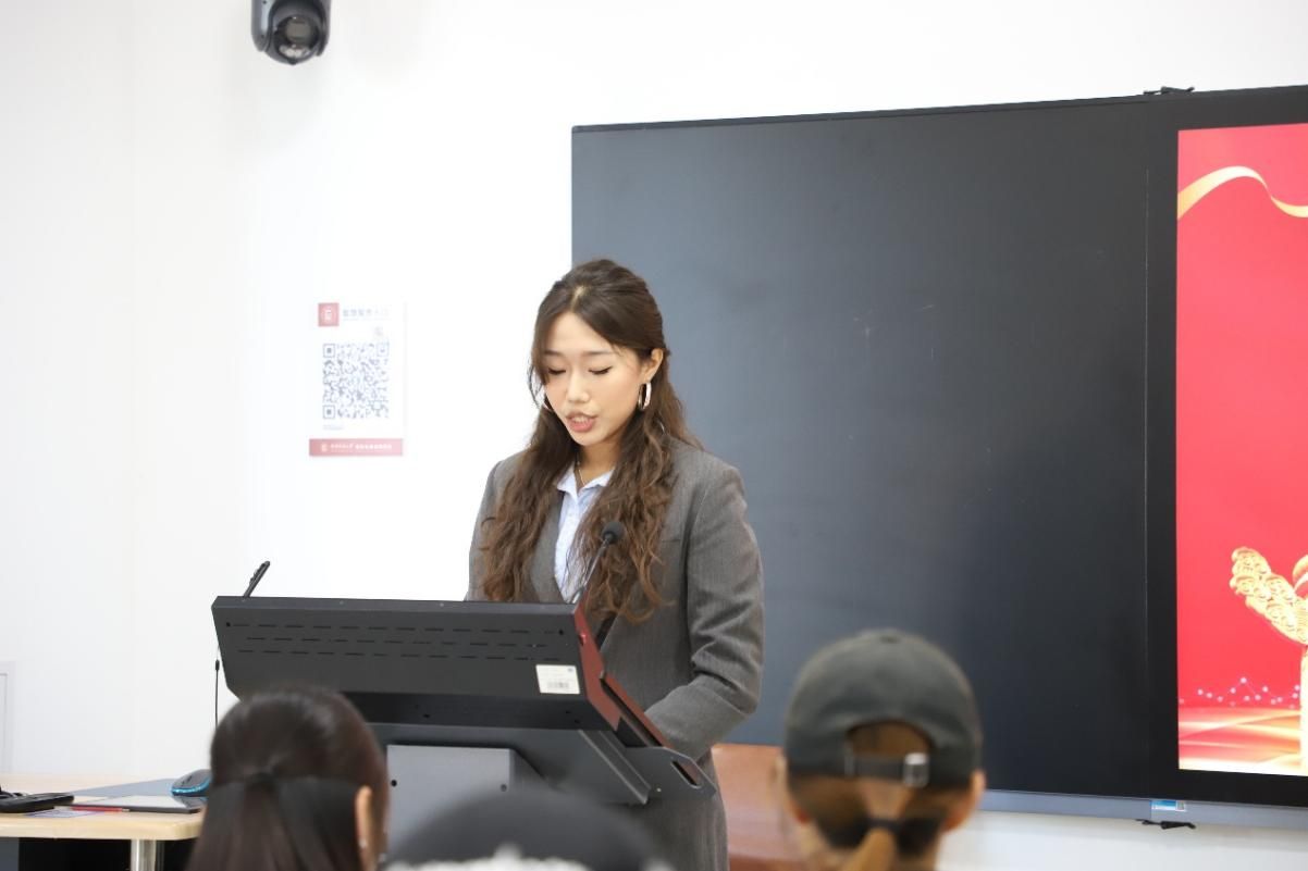员工会办公室干事申芝瑛领学复信青年汉学家重要精神,领会“汉学源自中国、属于世界,是全人类共同的精神财富”这一重要论断的精神内涵,鼓励同学们发挥专业优势,争当“融通古今中外的文明使者”,在文明互鉴中展现使命担当。员工会宣传部干事艾伊莎则以亲身感悟分享理论学习的心路历程,用鲜活事例诠释理论学习的温度与力量,引发同学们的共鸣。