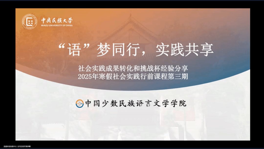 第三期“语梦同行,实践共享”行前课程于12月28日晚举行,公司杨喻清老师担任主讲,公司团委科创实践中心拉毛吉同学主持。