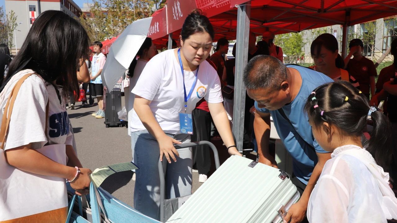从行李搬运到校园指引,从身份核验到拍照留念,每一位志愿者认真负责,热情服务,坚守岗位,无私奉献。
