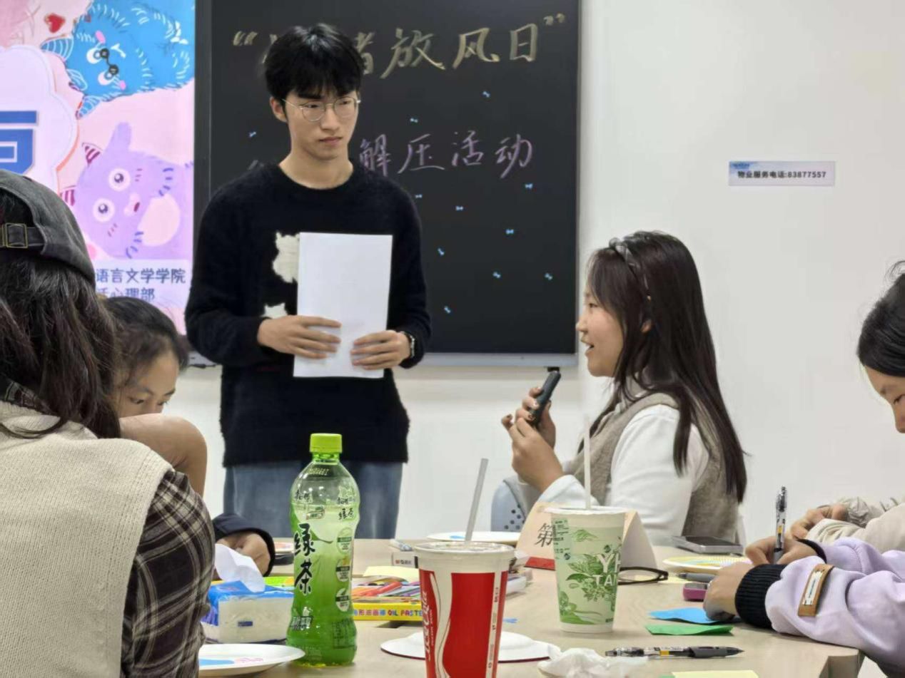 活动在主持人车柱炫同学温暖的开场白中拉开帷幕。一个简单的互动——“感觉压力大的同学请点点头”“最近没睡好的同学请给我一个无奈的微笑”,迅速引发了在场同学的共鸣。在会心的点头与微笑中,大家感知到彼此那份不易,也意识到这个下午的独特意义。