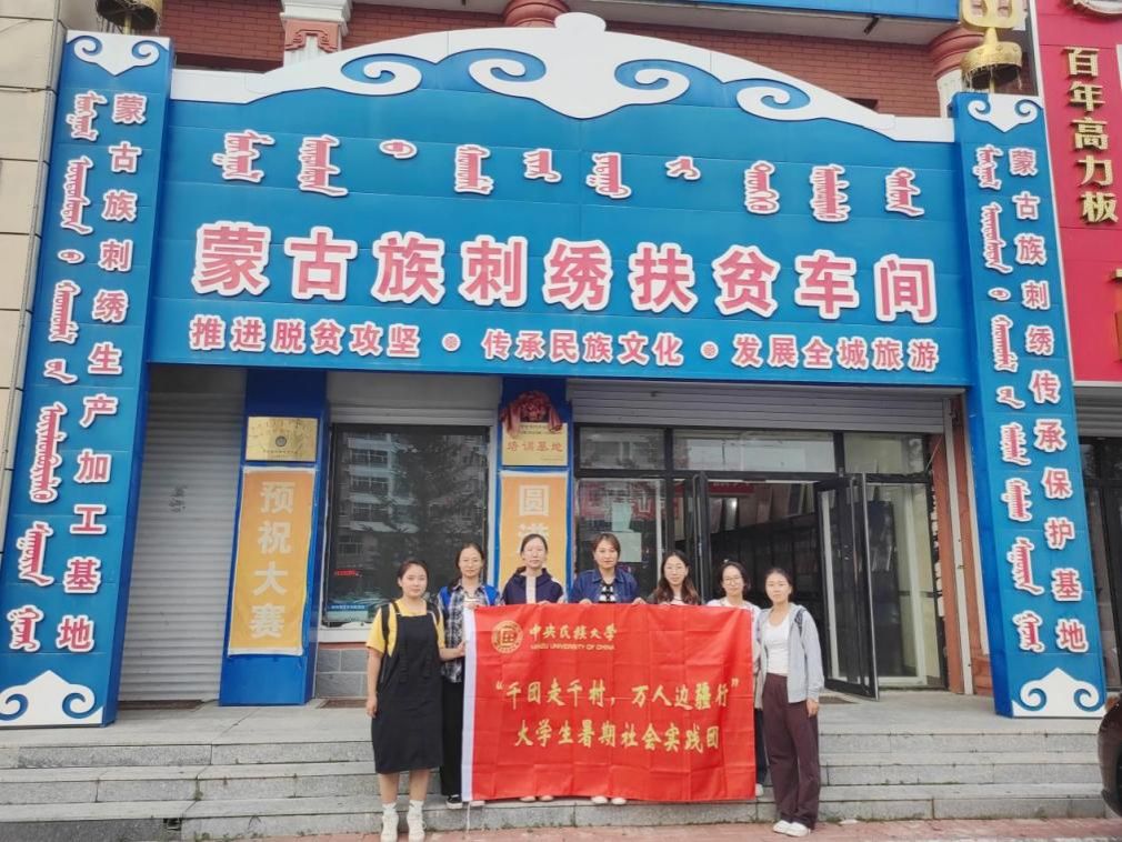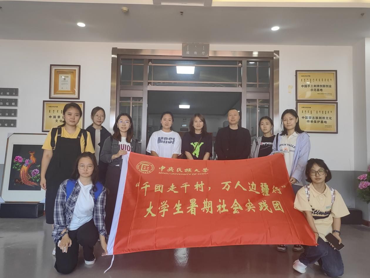 2023年8月5日至12日,w88win体育官网入口“千团走千村、万人边疆行”老员工暑期社会实践团深入内蒙古自治区兴安盟科右中旗对国家级非物质文化遗产蒙古族刺绣(图什业图刺绣)的传承与保护情况进行实地调研。由公司苏日娜老师和乌云毕力格老师带领的7名来自w88win体育官网入口、法公司、民族学与社会学公司的研究生和本科生,前往内蒙古科右中旗文化和旅游局、科右中旗蒙古族刺绣扶贫车间、蒙古族刺绣展示厅、兴安盟白嘎力职业技术公司、巴彦呼舒第六中学、科右中旗二龙屯和兴龙屯等地进行走访座谈。