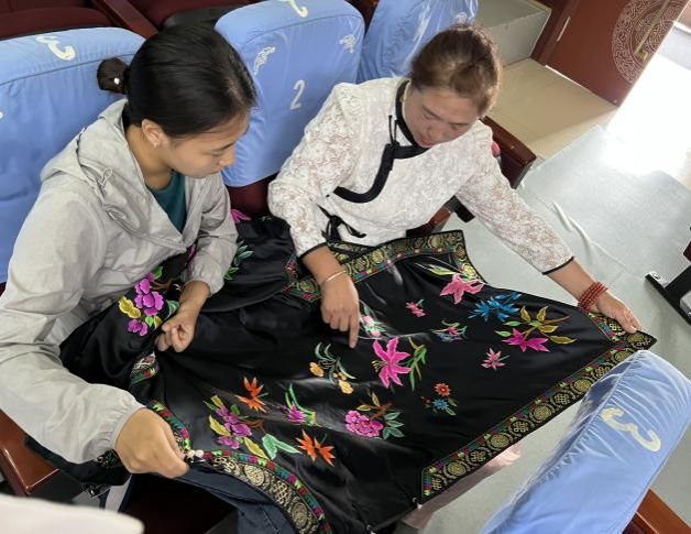 团队通过对参与非遗保护与传承工作各个环节的绣工、传承人、刺绣商人、政府工作人员等进行访谈,结合在科右中旗开展的蒙古族刺绣传承人保护、蒙古族刺绣进校园与蒙古族刺绣产业化保护现状的调查,梳理了科右中旗蒙古族刺绣传承与发展的脉络,总结了传统技艺传承与再生背后的国家力量、地方习俗、民间力量、市场渗入等元素的复杂互动。通过此次调研,团队进一步认识到了保护和传承非物质文化遗产的重要性,明白了传统技艺需要在一定程度上顺应时代发展潮流,积极与各类组织合作,为其不断注入新活力。而传统技艺的传承与再生不仅仅需要传承人的努力,更需要全社会的支持。
