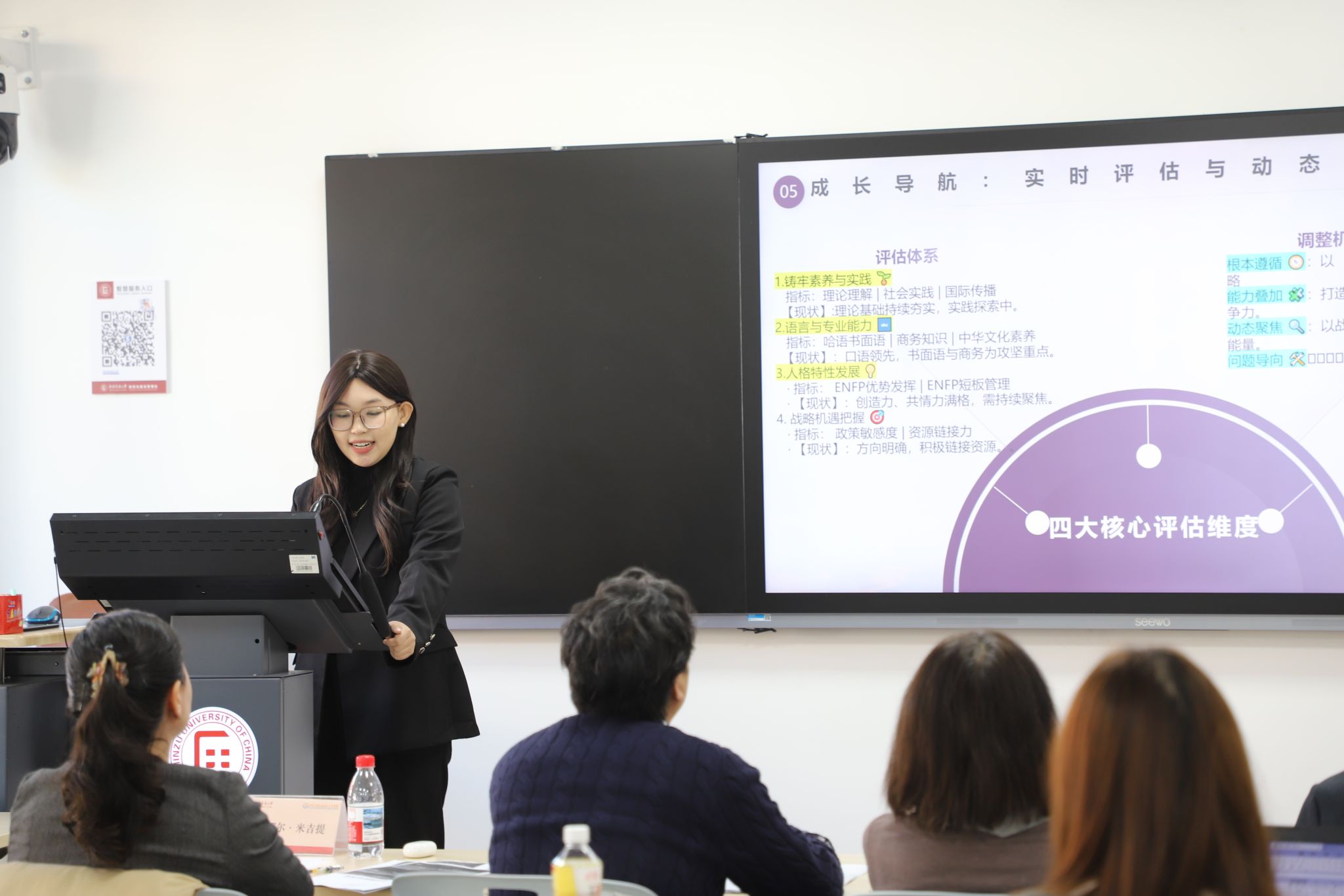 古丽娜尔·米吉提老师在总结发言中针对每位选手的特点提出了中肯的优化建议,同时也对同学们的职业探索精神和规划成果给予了充分肯定。她指出,职业规划大赛是展示自我和规划未来的重要平台,更是探索职业发展路径的生动实践环节。她勉励同学们充分借助公司的资源支持,完善目标,在职业规划的道路上稳步前行。
