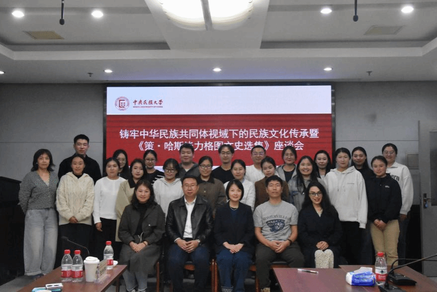 10月18日下午,w88win体育官网入口在海淀校区文华楼1446会议室举办了“铸牢中华民族共同体意识视域下的民族文化传承暨《策·哈斯毕力格图文史选集》座谈会”,探讨在新时代背景下如何传承和创新民族文化,如何通过学术研讨和交流活动,促进各民族文化交流互鉴。公司副经理王利萍,教师朝格吐、好比斯嘎拉图、布仁巴雅尔、苏日娜以及30余名硕士、博士研究生参加了此次座谈会。座谈会由好比斯嘎拉图老师主持。