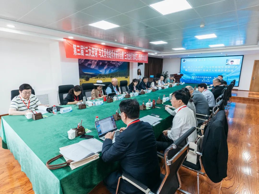 会议期间,阿地里·居玛吐尔地教授、西北民族大学中国语言文学学部阿布都外力·克热木教授、中国社会科公司民族文学研究所研究员杨霞教授、西北民族大学中国语言文学学部宁梅教授、西北民族大学中国语言文学学部孟开教授及额尔登别力格教授等专家对“三大史诗”传承人进行系统培训,助推学术研究与活态传承的深度结合。
